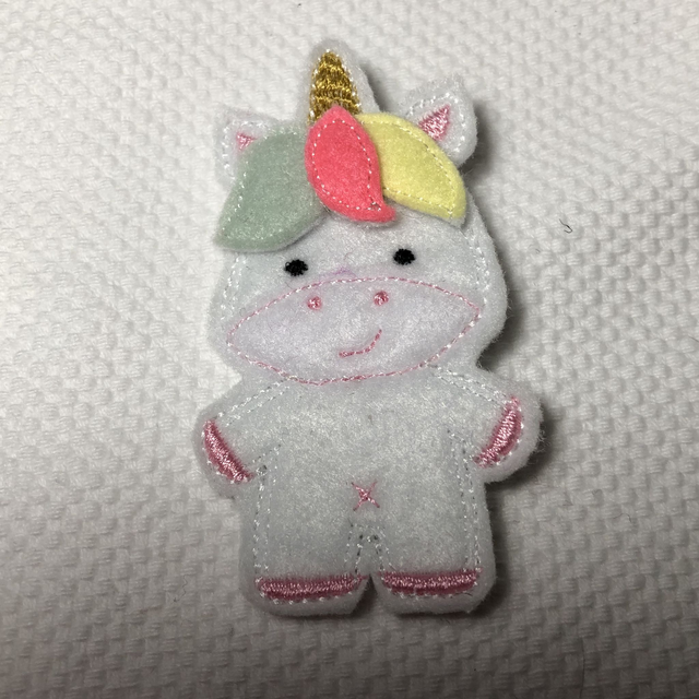 Add a touch of whimsy with this beautifully embroidered felt unicorn bear brooch, featuring a sparkling diamante detail for extra charm. Handmade from durable polyester felt in white, pink, and yellow hues, each brooch is carefully crafted with no glue—only securely hand-sewn clasps ensure lasting quality. Perfect as a unique gift or a delightful accessory, it brightens any outfit with its adorable design.
