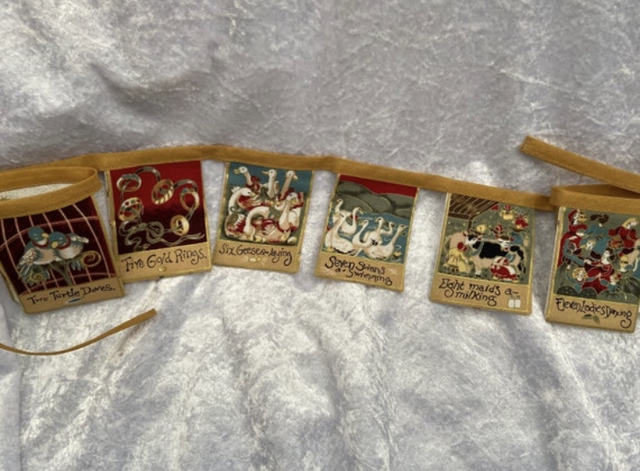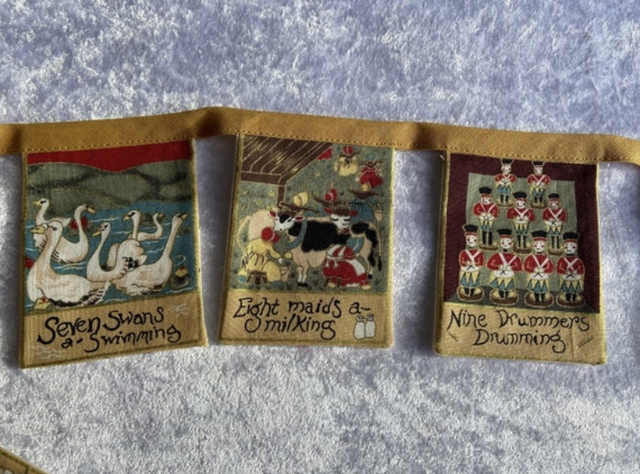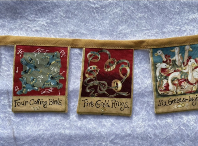 Beautiful Gold & Red 12 Days of Christmas Bunting