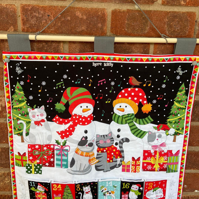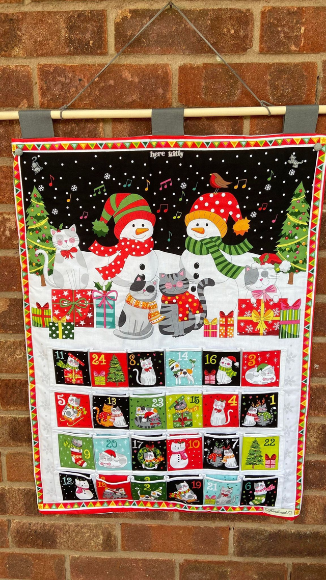 Celebrate the holiday season with this beautiful Cats fabric advent calendar, featuring 24 fully lined pockets perfect for small treats or keepsakes.