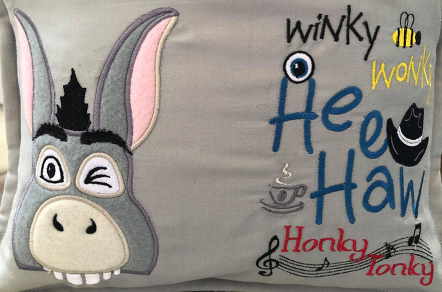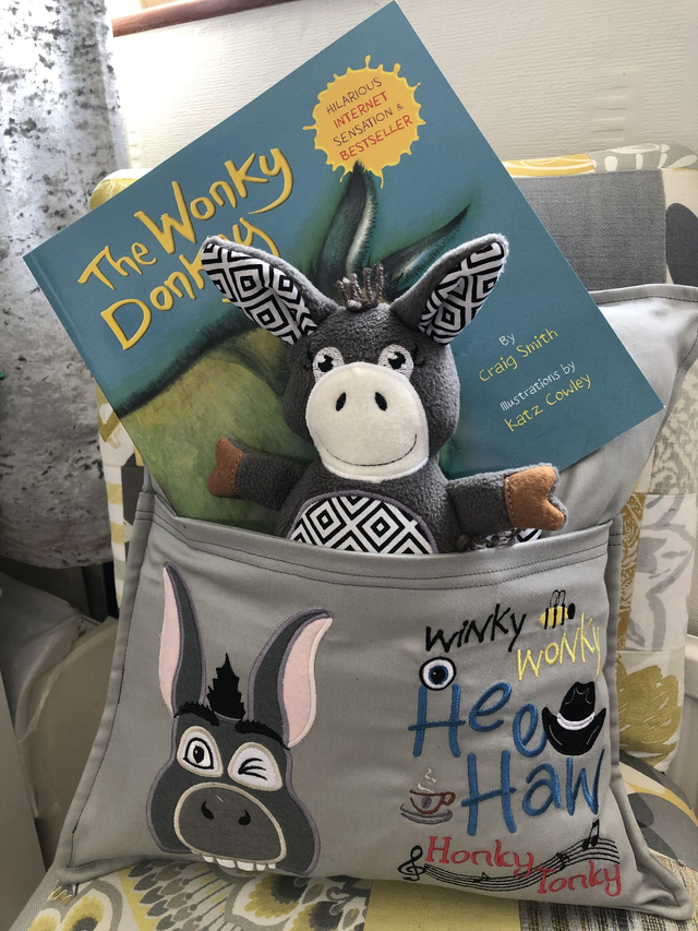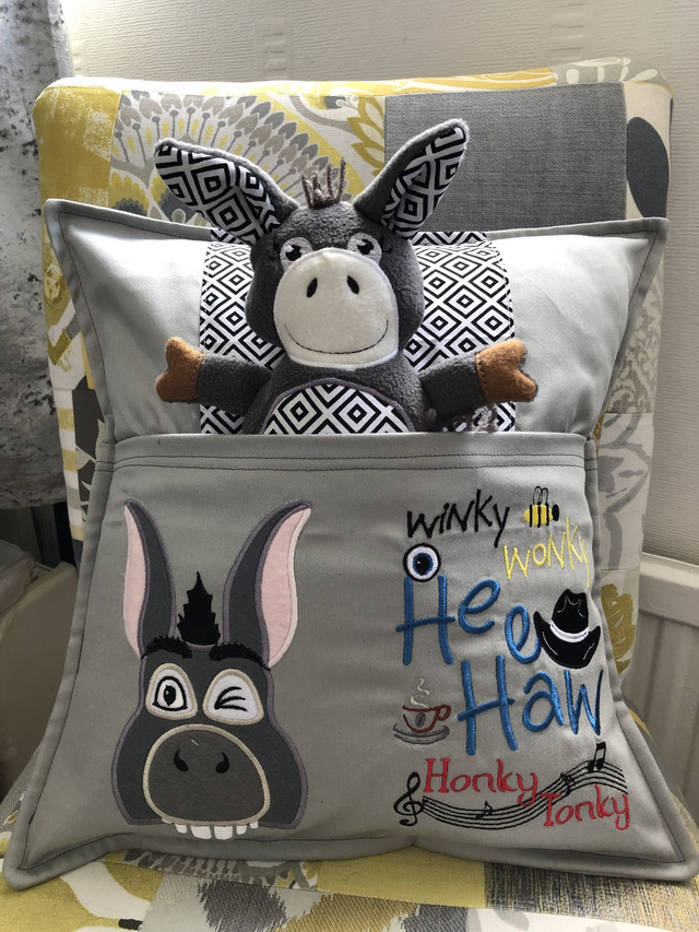 Donkey Embroidered Reading Book Cushion & Free personalised bookmark/name tag