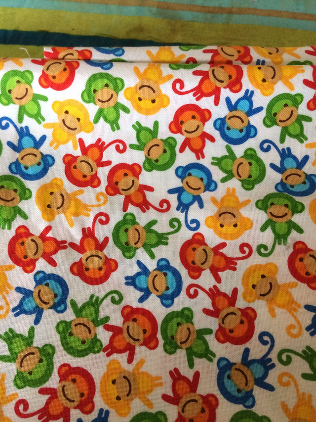 Item will be made with the same monkey fabric shown but different contrasting materials in your chosen colour(s).
