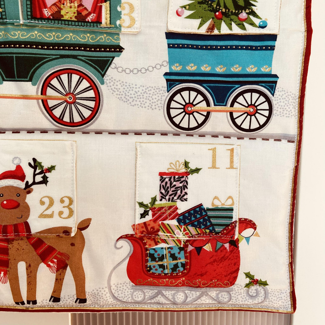 Crafted from a beautiful fabric panel, this heirloom piece features 24 fully lined, quilted pockets over soft polyester wadding—perfect for holding festive treats or small gifts.
