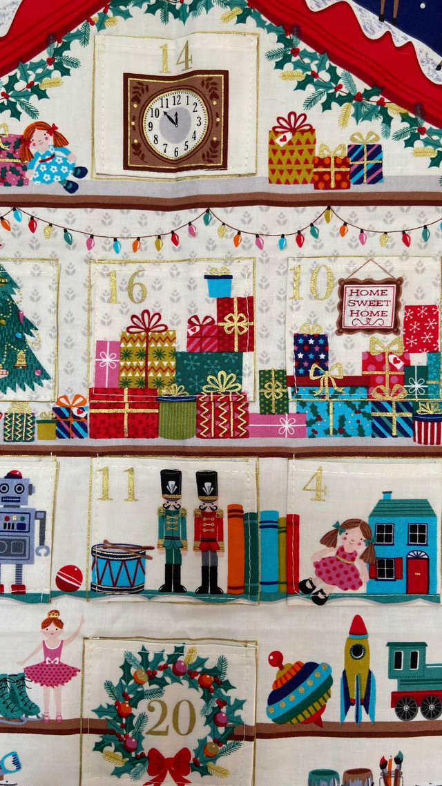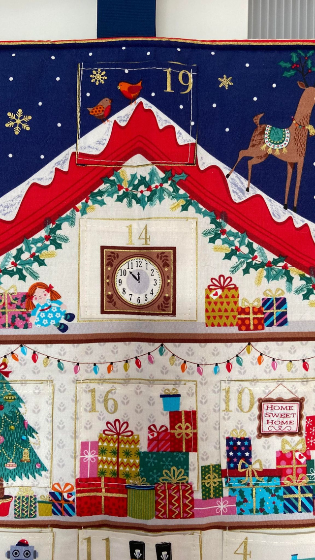 Crafted from a beautiful cotton fabric panel, it features 24 fully lined pockets—perfect for small treats or surprises each day leading up to Christmas.